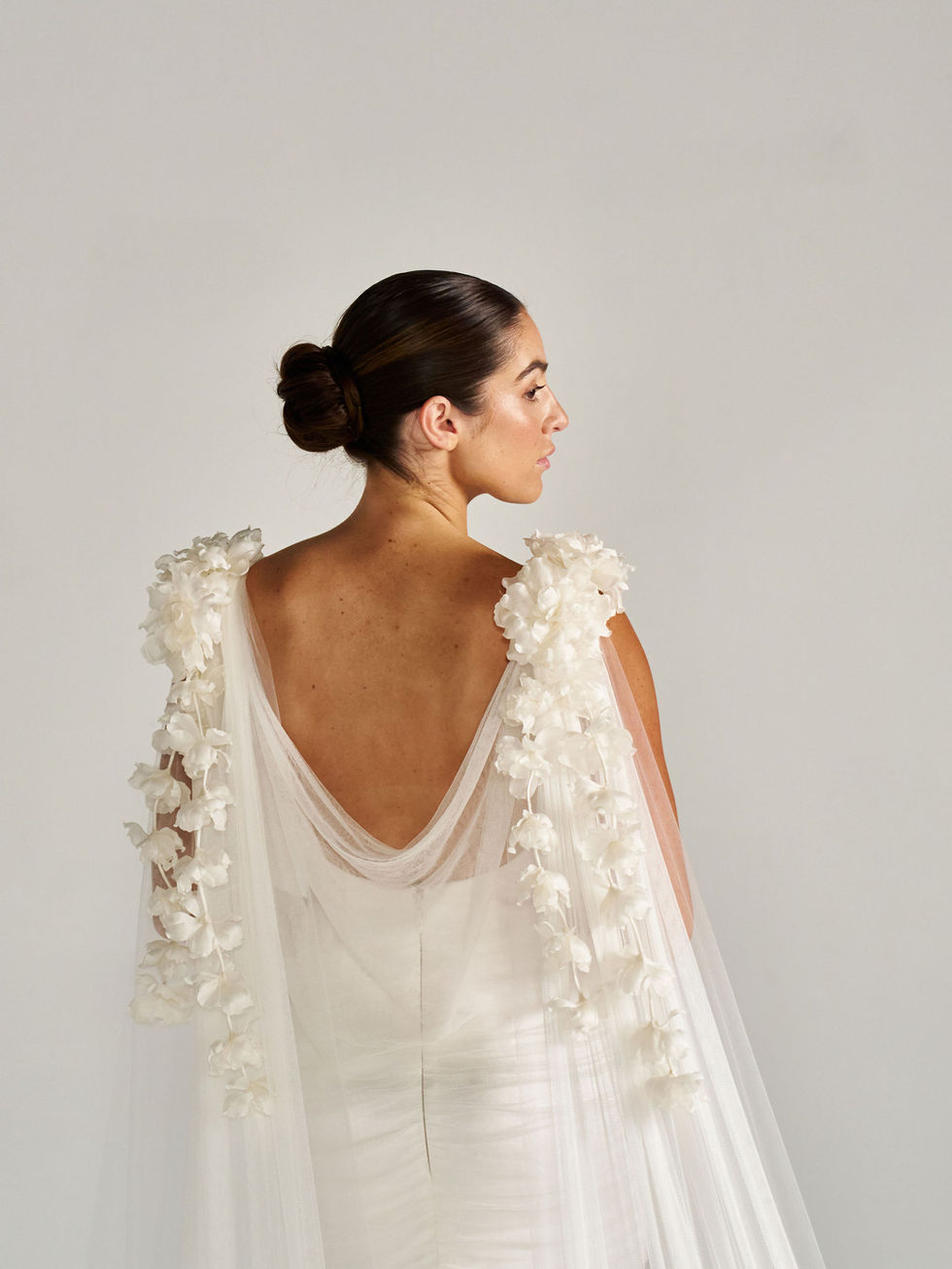 Handmade brooch of silk organza trailing flowers. Pin secured on underside for attaching. Clusters sold individually.